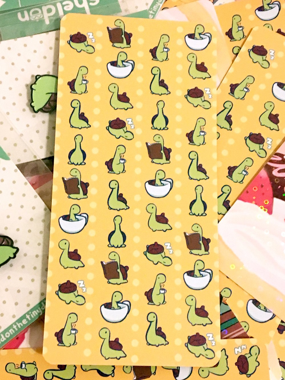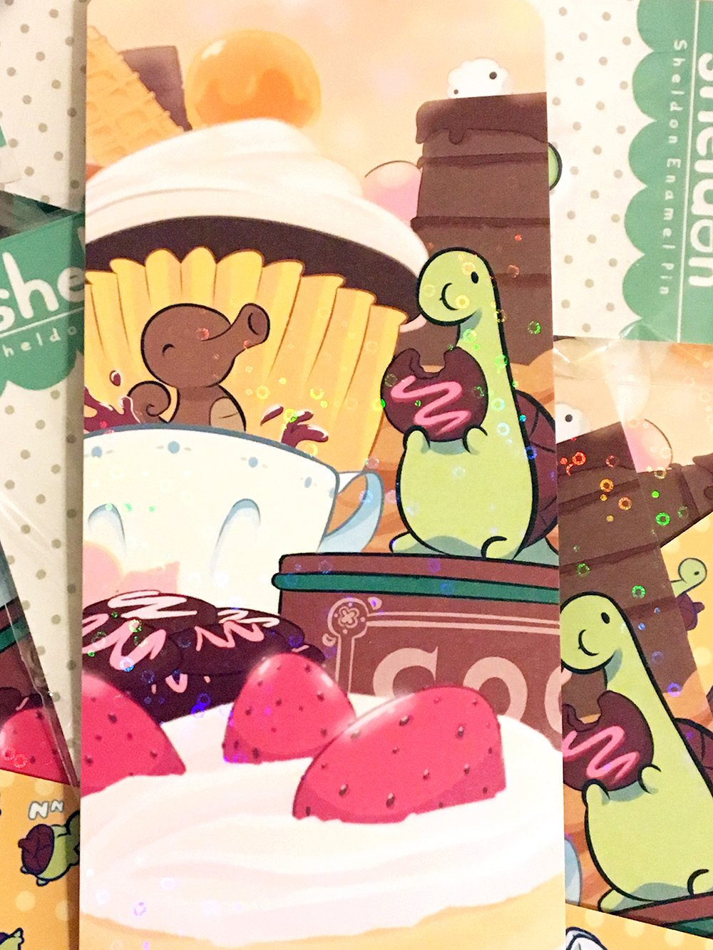 Sit down for sweets with Sheldon when you leaf through your favorite book! This double-sided bookmark features full color illustrations on both sides, with a bubble prism coating on one side. Whether you need a new bookmark or just want a mini print of Sheldon, you'll always smile when you look at Sheldon & Co.