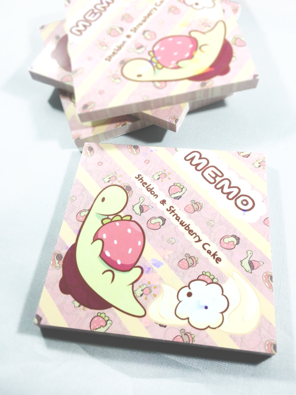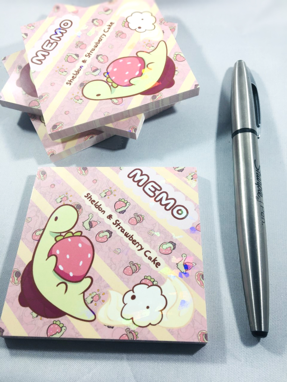 Jot down shopping lists, reminders and more on this 50 page memo pad featuring Sheldon and Puff enjoying some strawberries and cream treats!
