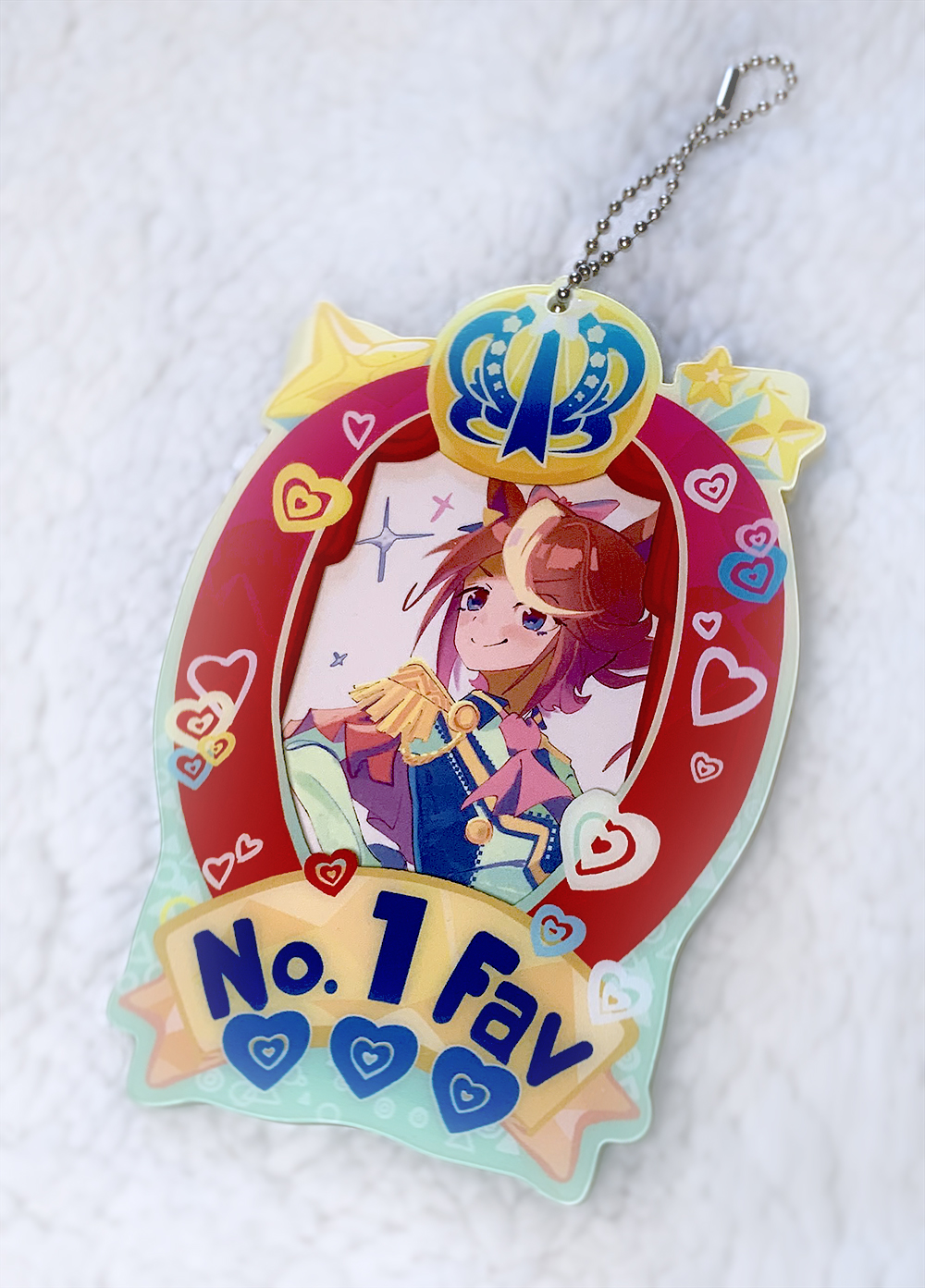Showcase your favorite trainee's photocard inside this acrylic photocard holder! Measuring between 5.1~5.5" in length (depending on the design) you can loudly proclaim your support for your racer. Each design can fit a photocard about the size of a credit card. Comes with your choice of photocard. Pick from one of two designs to either declare your No 1. Fav, or relive the first time the gate opened for your debut race!